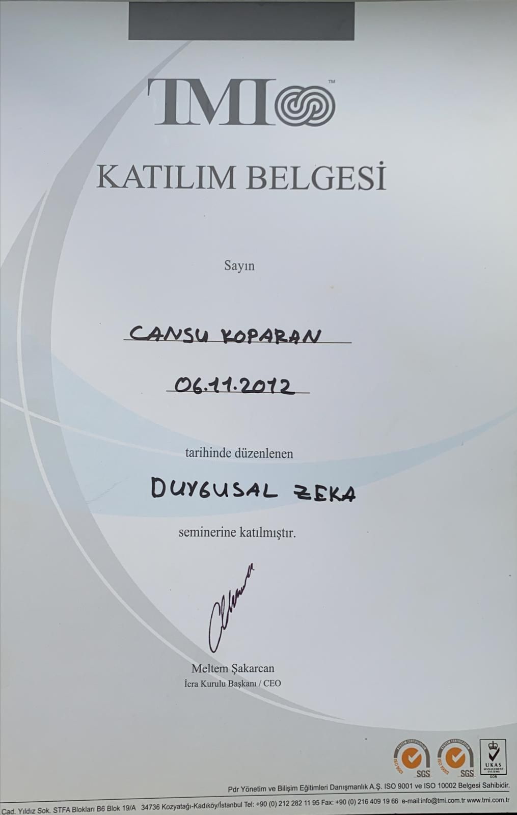 Gidip gitmemek arasında kararsızken, Cansu Hanım'a gittikten sonra iyi ki gitmişim dedim. Çok güler yüzlü ve enerjisi şahane olan bir insan. Harika iyi bir dinleyici aralarda kurduğu cümleler görünmeyen bir aynayla hayatınıza etki ediyor diyebilirim. Teorik bilgisini ustaca pratiğe döken, her söylediğiniz kelimeyi dikkatle dinleyen ve analiz eden sonrasında da birlikte adım adım çözüme giden bir uzman aynı zamanda. Düşen yaşam kalitem kendisi sayesinde yükseldi. Kendime, hayata, çevremdeki her şeye bir başka bakıyorum yardımları sayesinde. Tekrardan çok teşekkür ederim ve herkese tavsiye ederim.